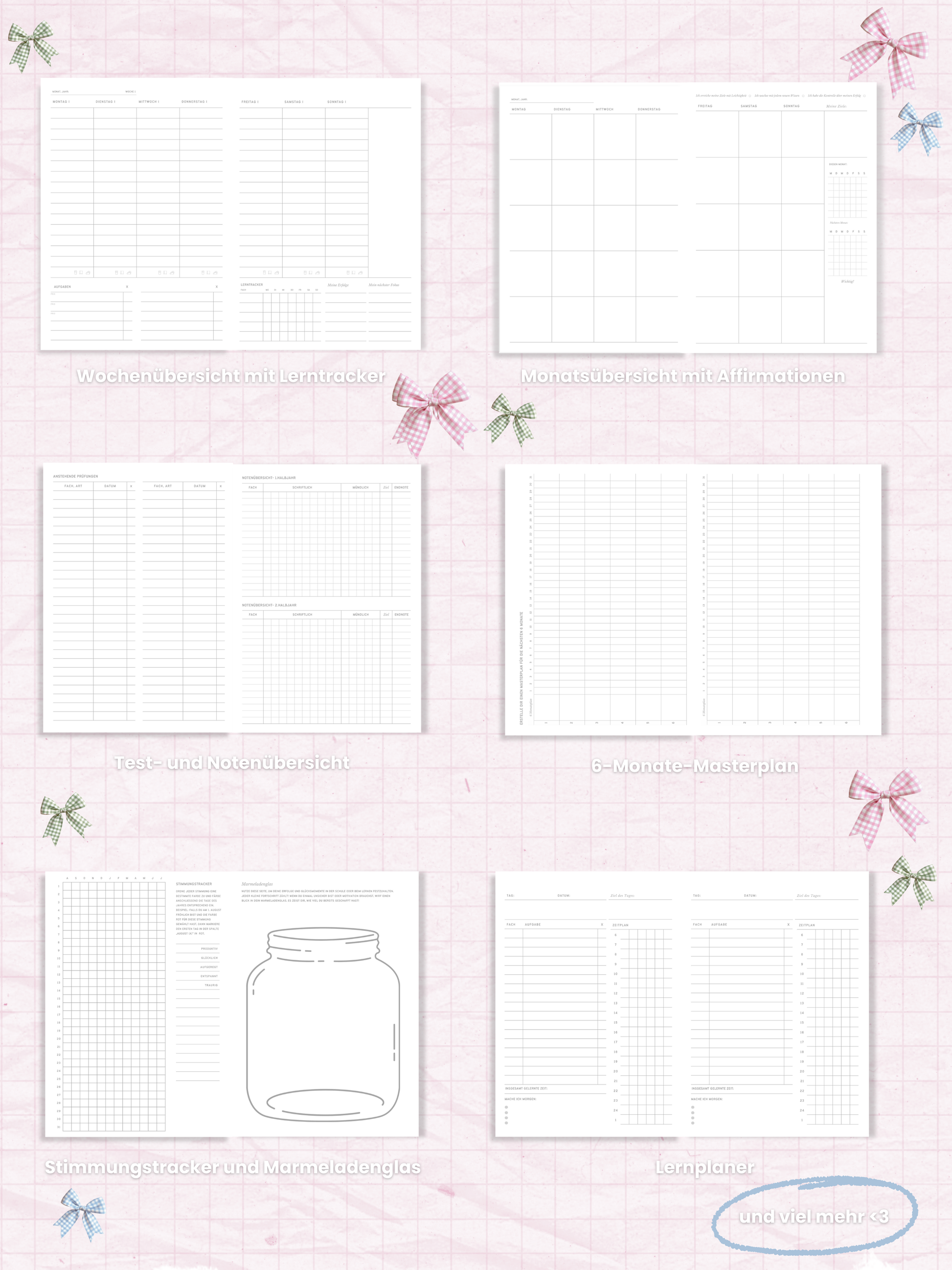 Mit 192 viel Liebe gestalteten Seiten, perfekt für deinen Schulalltag – voller Platz für Hausaufgaben, Schularbeiten und Lernpläne. 💭✨ Einfach praktisch, motivierend und vollgepackt mit nützlichen Extras.